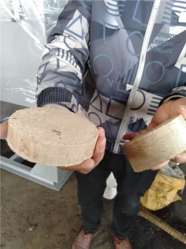 • 河南鑫源液壓全自動木屑壓塊機成型現場Y